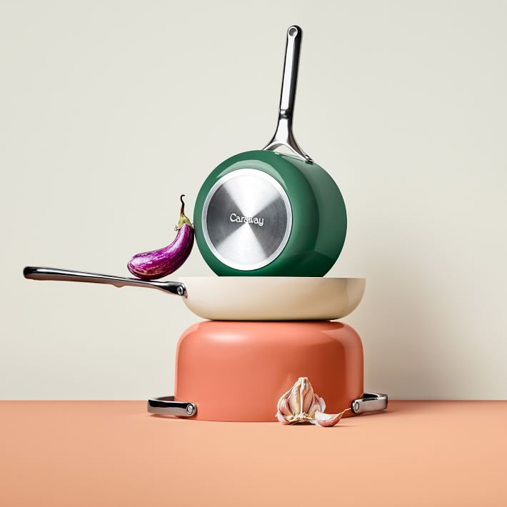 Caraway's next generation 5-piece kitchen set includes four versatile cooking products and a storage system that will blow your mind!