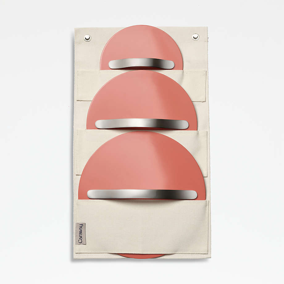 You aren't the only one that has scratched your head on why it takes so much space for all your pots and pans. Caraway has reimagined not only cookware devices, but the way you store them. This set includes an easy and convenient way to store your pans and lids. A magnetic rack stores each cookware item in this set on it's side - no more stacking items on top of each other and wondering if it will damage your pans and pots.