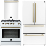 FORNO Espresso Package - 30" Gas Range, 36" Refrigerator with Ice Maker and Dishwasher in White with Antique Brass Accents