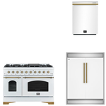FORNO Espresso Package - 48" Gas Range, 60" Refrigerator, Dishwasher in White with Antique Brass Accents