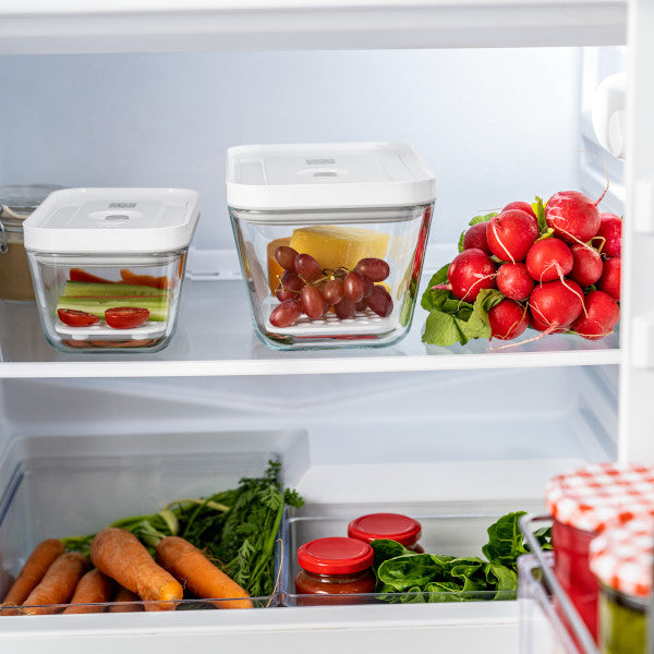 Prevent soggy leftovers and messy condensation on your fruit and produce with these Fresh & Save drip trays. Keep cheese, cold cuts, and broccoli dry in the fridge, all under vacuum thanks to the Fresh & Save food storage system. The holes allow condensation, moisture, and grease to drain, so your food remains crisp. To use, simply insert the plastic tray inside the base of your glass container to allow excess moisture to drain.