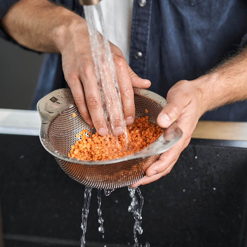 • EASY HANDLING. The practical handles on the sides of the colander ensure a good grip and easy handling during cooking, even under running water.