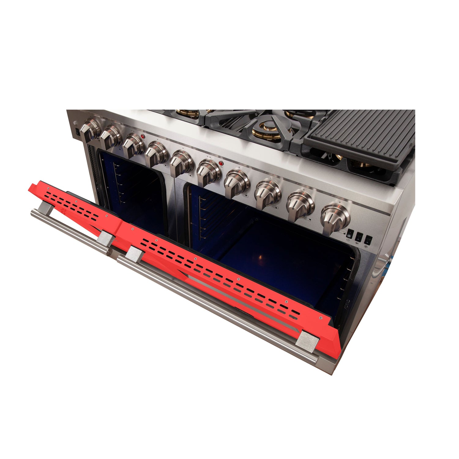 FORNO Capriasca 48″ 6.58 cu. ft. Gas Range with 8 Italian Burners in Red, FFSGS6260-48RED