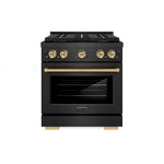 ZLINE Autograph 30" 4.2 cu. ft. Paramount Gas Range with 4 Burner DuoPro Cooktop in Black Satin and Champagne Accents, PSGRBSZ-30-CB