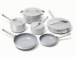Experience the convenience of Caraway's chemical-free cookware bundle, including our much-loved Cookware Set and our new Minis Duo. Revel in the finest of our ceramic-coated cookware, available in sizes perfect for a variety of dishes--all at no extra charge with the special set-exclusive cookware organizers.