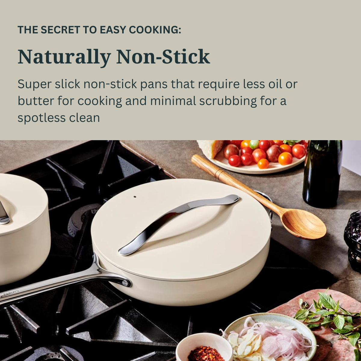 • Multi-Layer Construction. Combines a non-stick ceramic surface, an aluminum core for efficient heating, and ergonomic stainless steel handles for comfortable use