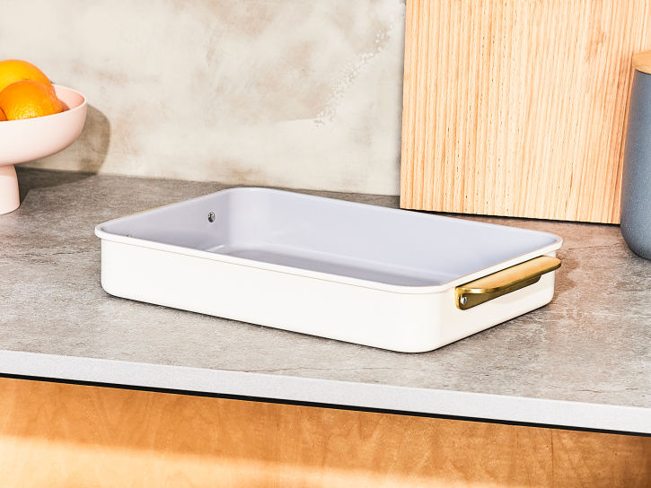 Unlock a world of wholesome baking possibilities with our 9" x 13" Rectangle Pan – your gateway to delectable treats minus the drawbacks. From indulgent brownies to hearty lasagnas and beyond, this versatile pan stands ready to transform your culinary creations. Engineered with a non-toxic, naturally smooth ceramic coating, this enduring pan redefines the art of health-conscious baking while ensuring effortless cleanup, making your kitchen endeavors more convenient than ever before.