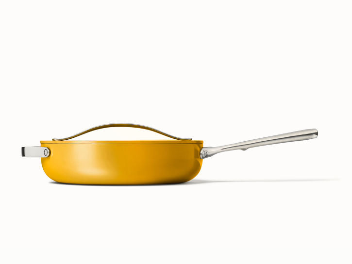 This premium ceramic Sauté Pan (with lid included) enables you to engage in healthful cooking without the use of dangerous chemicals. Ideal for preparing stews, dinner parties, and other dishes, the non-toxic ceramic-coated interior of this resilient non-stick pan renders cooking a breeze, makes cleaning a pleasure, and adds a touch of vibrancy to any abode.
