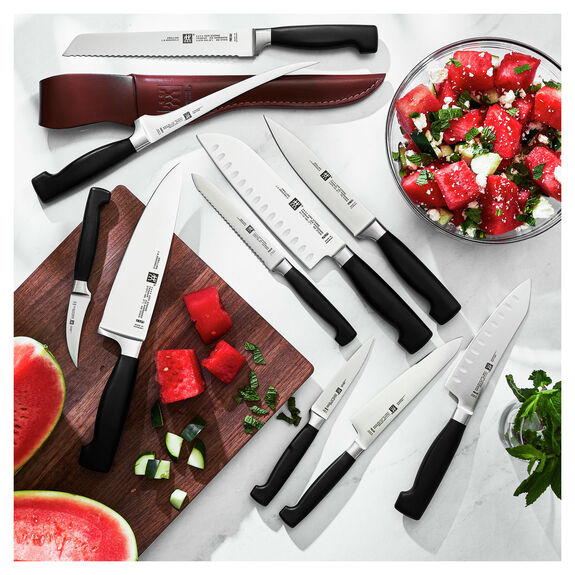 Four Star knives are made of proprietary special formula steel that has been perfected for almost 300 years. Combined with ZWILLING’s signature ice-hardening technique, these FRIODUR blades are harder, sharper, they will not stain or chip, and they retain their sharpness longer. Precision forged from a single piece of steel, the SIGMAFORGE knives have an exceptionally sturdy, balanced, and flexible blade.