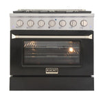 Kucht Professional 36 in. 5.2 cu ft. Propane Gas Range with Black Door and Silver Knobs, KNG361/LP-K
