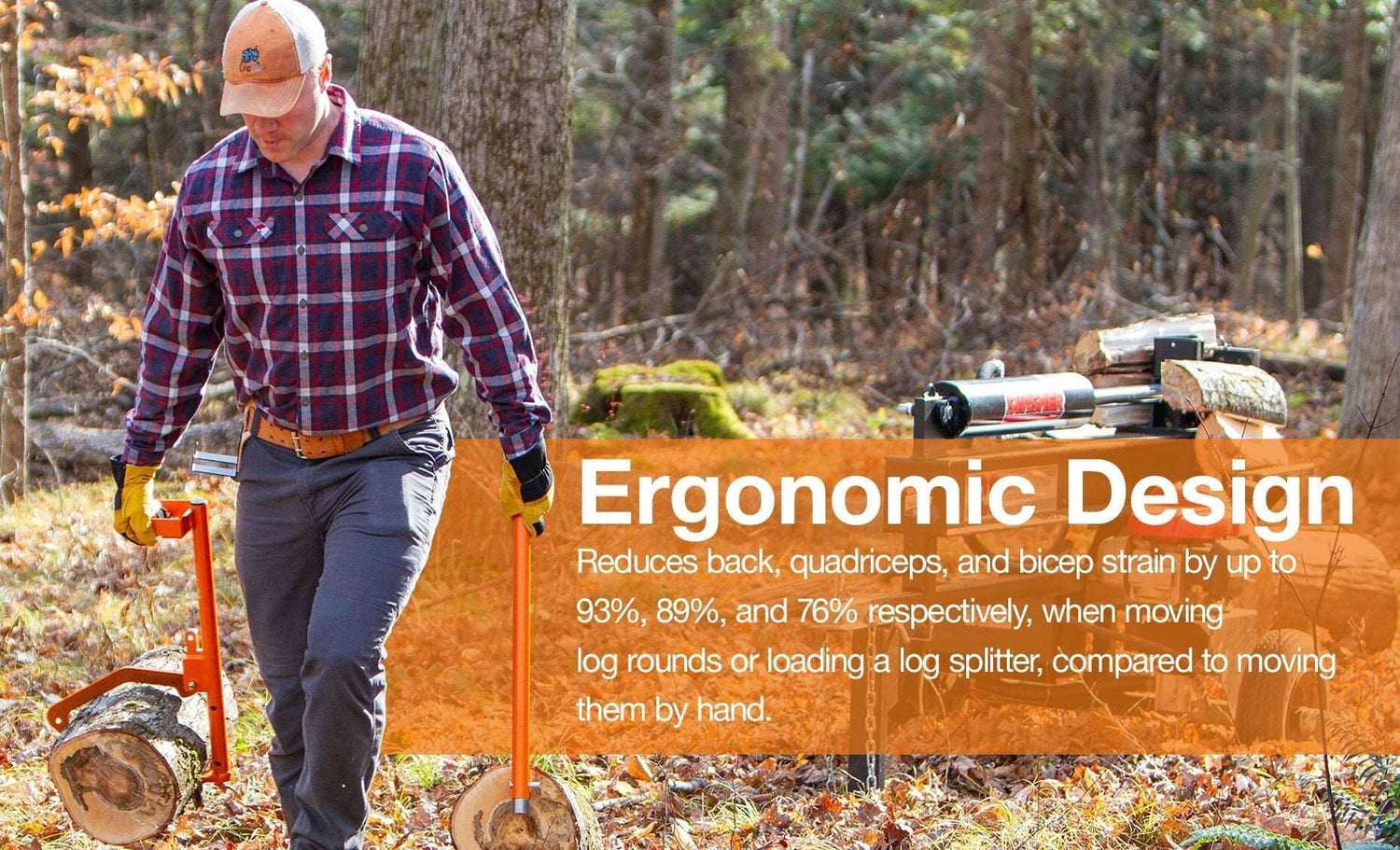 21” HAULER- Lift, drag, and roll logs, without bending over. Scientifically proven to reduce the painful arm and back strain of repetitive motions like loading log rounds onto a log splitter by up to 93% vs lifting by hand.