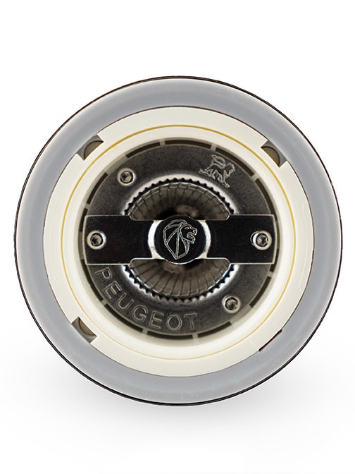 Completely transparent, the Peugeot Daman collection salt mill has no central shaft, so you can clearly see the salt crystals that it holds. Its pure design elegantly combines the transparency of acrylic with the unique radiance of stainless steel. It is fitted with the u’Select patented grind control system, used to adjust seasoning by selecting the size of grind of the salt from the 6 possible options. As with all Peugeot mills, the steel salt grinding mechanism comes with a lifetime guarantee.
