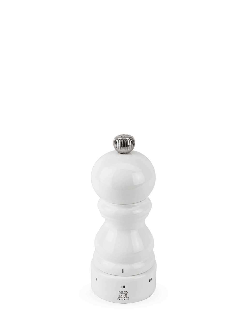 Its iconic curved silhouette is undeniably familiar to you, spotted in a restaurant or at the homes of friends who love cooking! Nothing surprising about that. The Paris u’Select 12 cm salt mill is a benchmark in the culinary world! A compact version of the Paris range created 30 years ago, this mill has a bright white glossy finish for a touch of extra refinement. This manual salt mill is equipped with the highly effective Peugeot mechanism, which comes with a lifetime guarantee. A major innovation by the Lion brand, the patented u'Select technology makes it easy to select grinding size. Position 1 for very fine grinding, 6 for a coarser grind. As well as being functional, the Paris u’Select 12 cm salt mill is a genuine deco item to light up your table and your work surface.