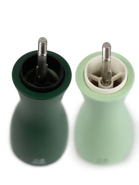 This subtle and sophisticated set of Tahiti salt and pepper mills is a tribute to the beautiful tones of nature that we are keen to incorporate into our interior designs to create a calming, content ambiance. The dark moss green of the pepper mill and the slightly more muted mint green of the salt mill balance and complement each other perfectly, as much as their contents which are easy to identify by the contrasting shades. The French-made Tahiti salt and pepper mills are crafted from sustainably sourced wood and equipped with a lifetime guaranteed steel mechanism. The exquisite "S" and "P" buttons that adorn the top of the salt and pepper mills conceal a smart feature for adjusting the grind setting.