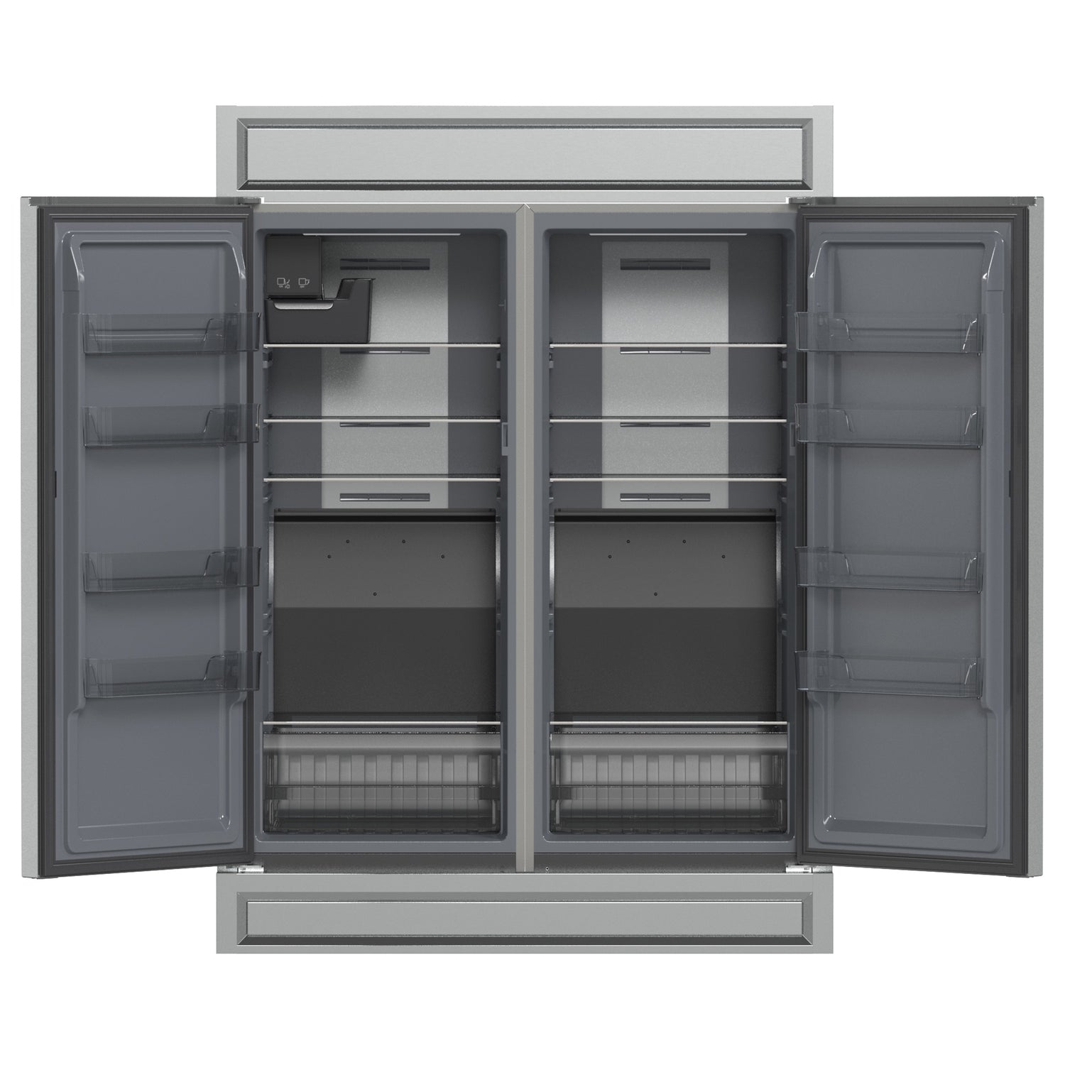 The Fortezza 60" Convertible Refrigerator/Freezer with Trim Kit pairs Total No Frost cooling with Energy Star efficiency to keep temperatures steady without ice buildup. Inside, adjustable shelving, door storage, and a galvanized steel–coated interior provide durable, flexible organization. A digital control panel offers precise settings from -24°C to -14°C in freezer mode and 0°C to 8°C in refrigerator mode, with Fast Freeze to lock in freshness. An automatic filtered ice maker supplies crescent-shaped cubes, while the counter-depth stainless finish and included trim kit create a clean, built-in look for modern kitchens.
