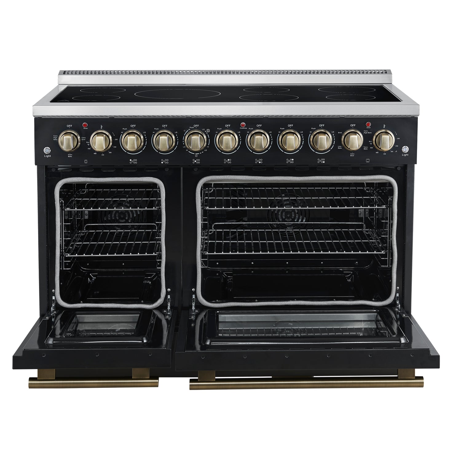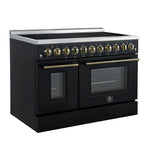 FORNO Paolo 48" 6.7 cu. ft. Freestanding Electric Range with True Convection Oven in Black with Antique Brass Accents, FFSEL6011-48BLK