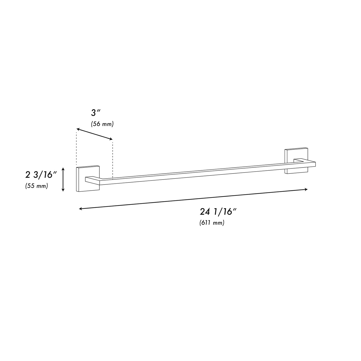 • Dimensions: 24.0625" W x 3" D x 2.1875"H