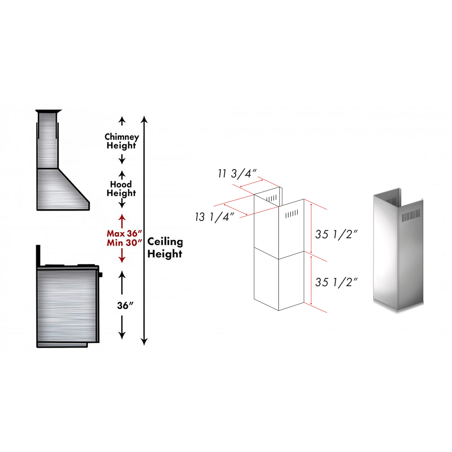 This 2 Piece Chimney Extension will fit all ZLINE range hoods with model number: