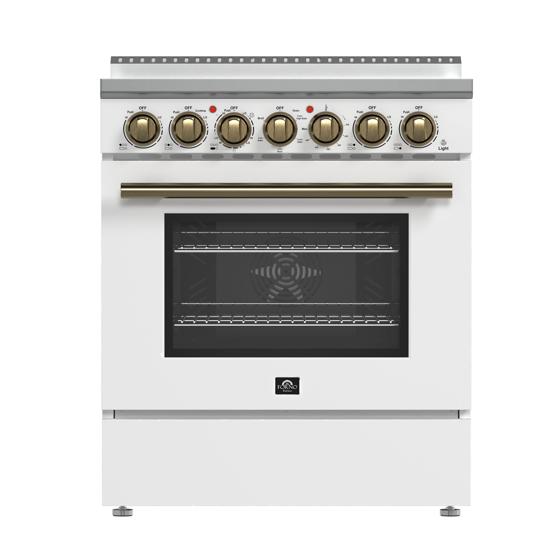FORNO Paolo 30" 4.38 cu. ft. Freestanding Electric Range in White with Antique Brass Handles, FFSEL6011-30WHT