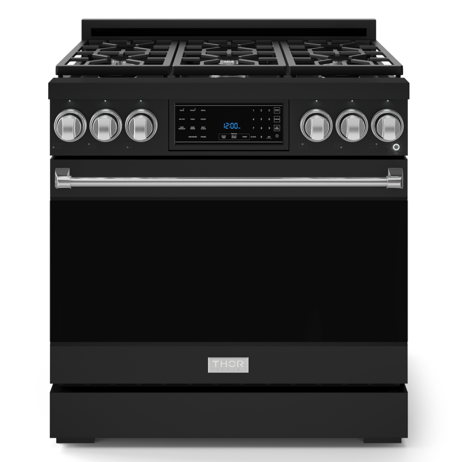 Gordon Ramsay by THOR Kitchen 36" 6.0 cu. ft. Professional Natural Gas Range with Tilt Panel Touch Control, Self-Clean and Air Fry in Matte Black with Stainless Steel Accents, RSG36B-SS