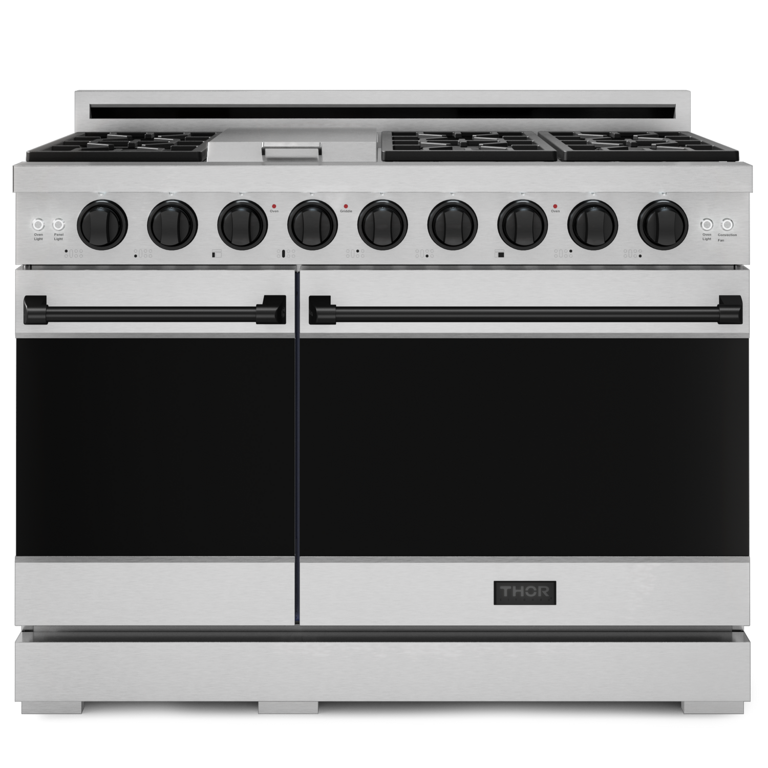 Gordon Ramsay by THOR Kitchen 48" 6.8 cu. ft. Professional Natural Gas Range in Stainless Steel with Black Accents, RSG48E-BLK