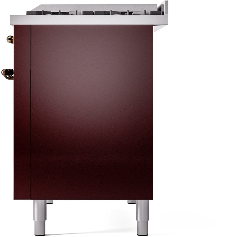 ILVE Nostalgie II 48" Dual Fuel Natural Gas Range in Burgundy with Bronze Trim, UP48FNMPBUB