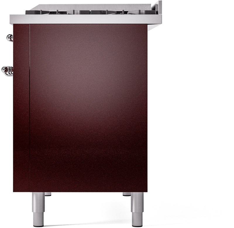ILVE Nostalgie II 48" Dual Fuel Natural Gas Range in Burgundy with Chrome Trim, UP48FNMPBUC