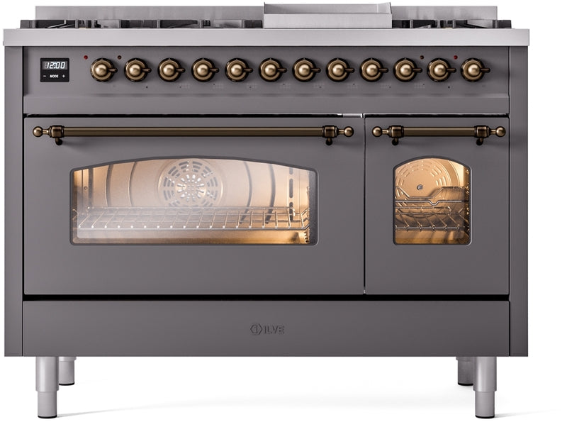 ILVE Nostalgie II 48" Dual Fuel Natural Gas Range in Matte Graphite with Bronze Trim, UP48FNMPMGB