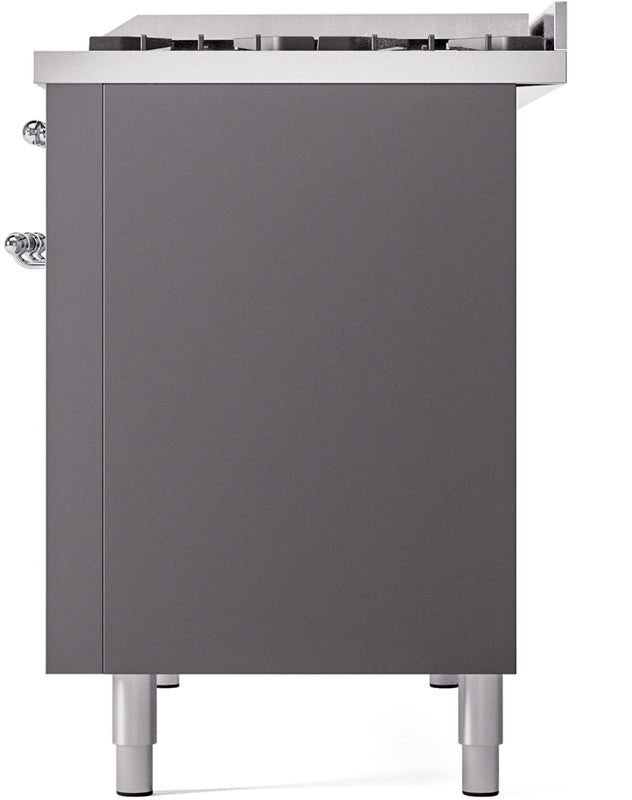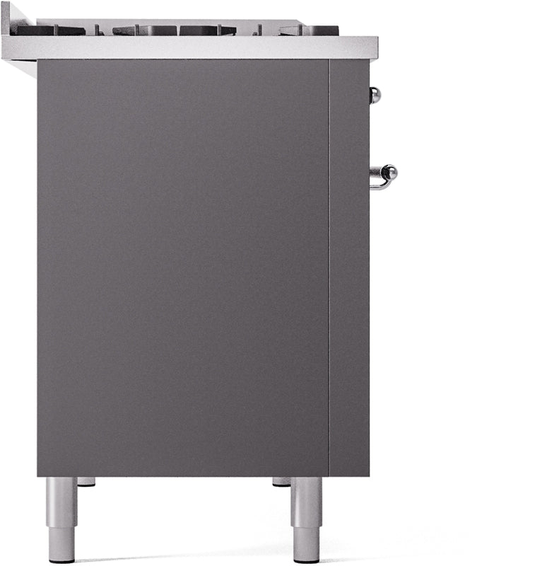 ILVE Nostalgie II 48" Dual Fuel Natural Gas Range in Matte Graphite with Chrome Trim, UP48FNMPMGC