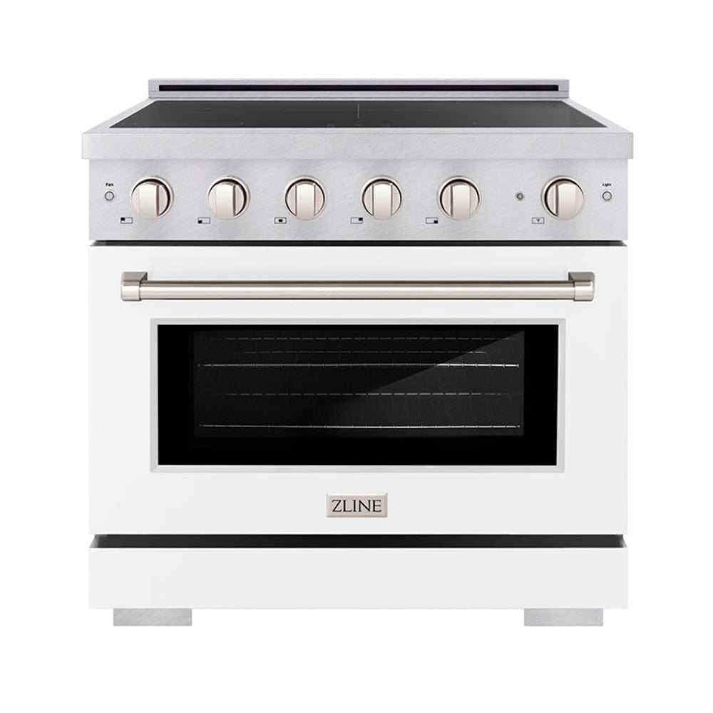 ZLINE 36" 5.2 cu. ft. Paramount Induction Range with 5 Element Cooktop and Electric Convection Oven in Satin Stainless Steel with White Matte Door, SINRS-WM-36