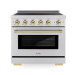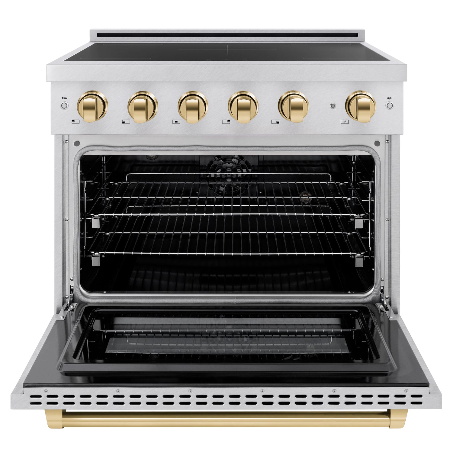 ZLINE 36" 5.2 cu. ft. Paramount Induction Range with 5 Element Cooktop and Electric Oven in Satin Stainless Steel with Polished Gold Accents, SINRSZ-36-G