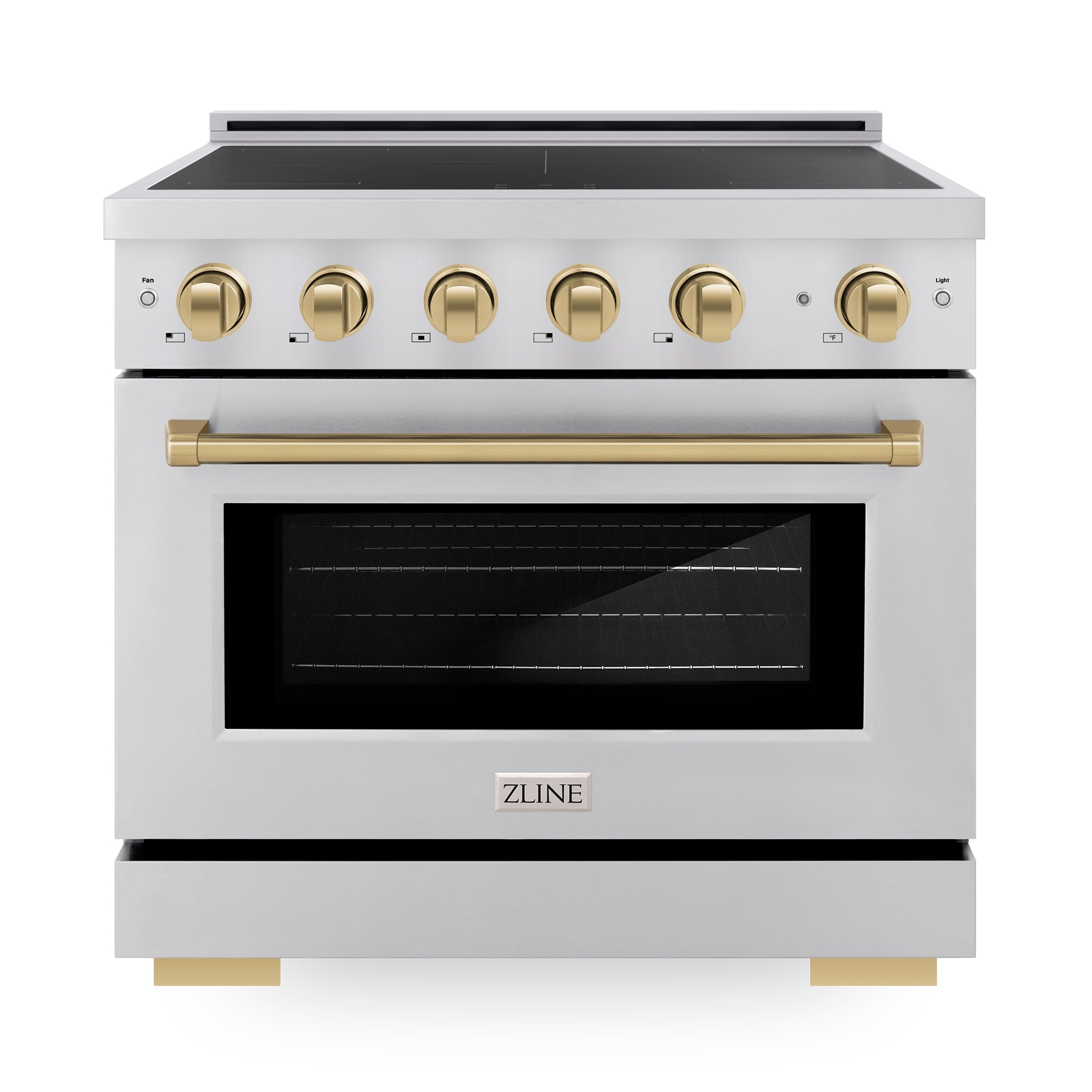 ZLINE 36" 5.2 cu. ft. Paramount Induction Range with 5 Element Cooktop and Electric Oven in Stainless Steel with Champagne Bronze Accents, SINRZ-36-CB