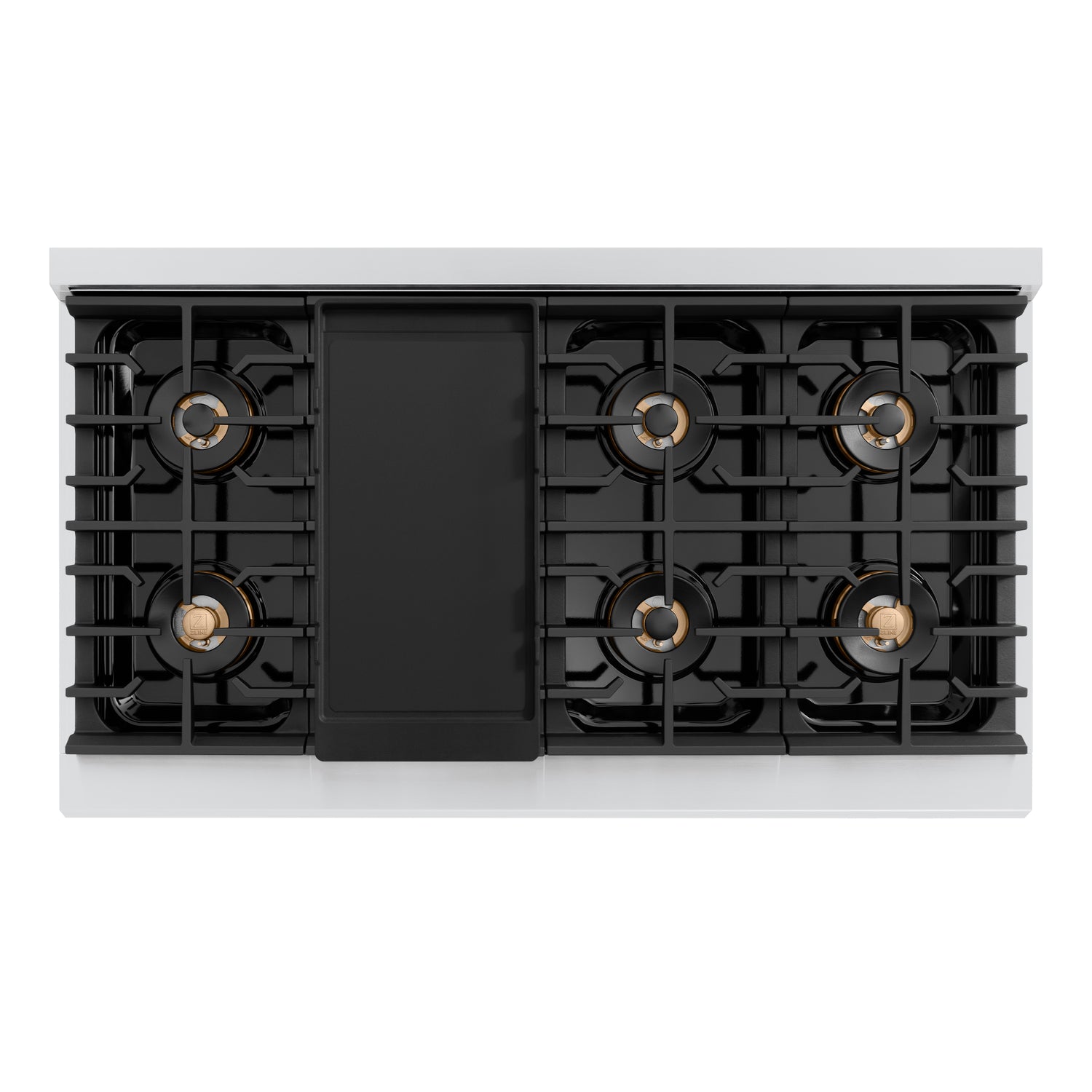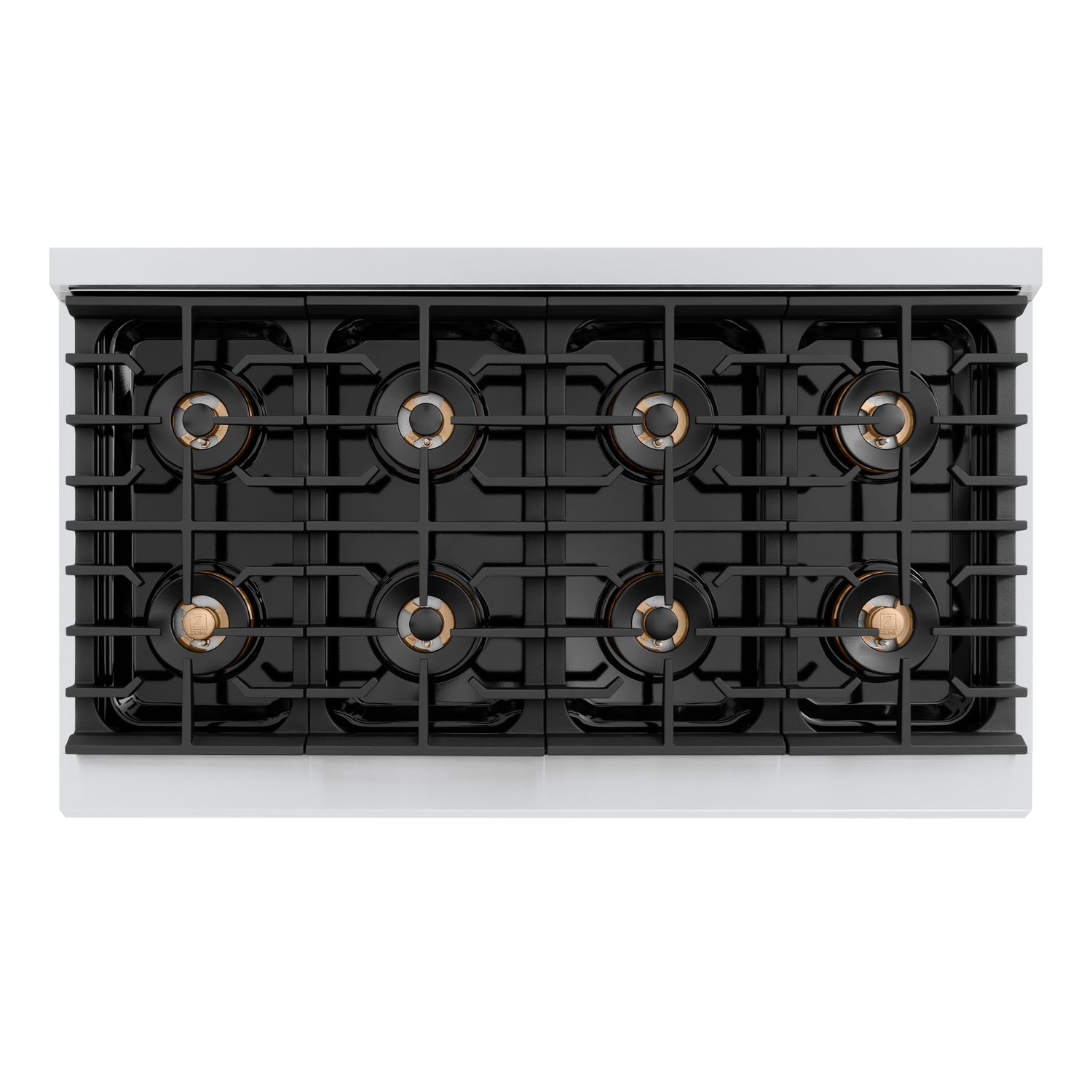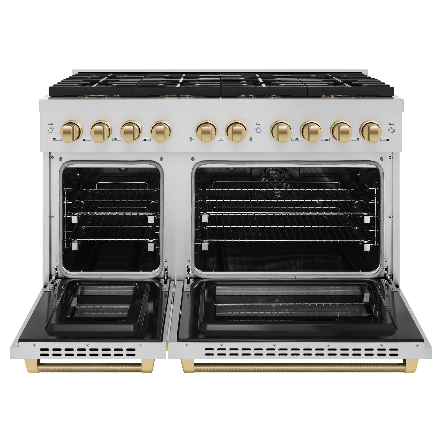 ZLINE Autograph 48" 6.7 cu. ft. Paramount Dual Fuel Range with 8 Burner DuoPro™ Cooktop and Dual Ovens in Stainless Steel with Champagne Bronze Helix Handles and Accents, PSDRZ-48-KCB