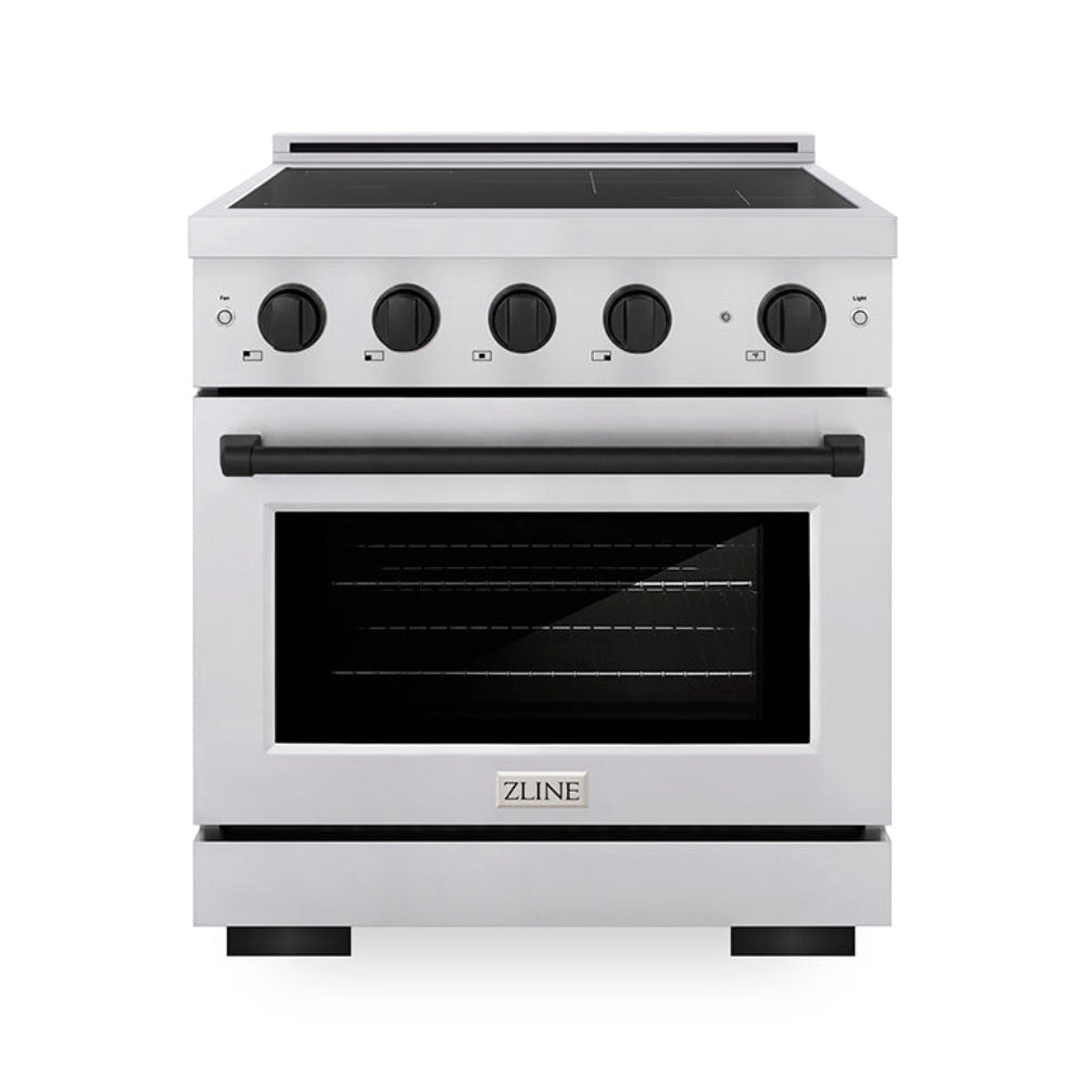 ZLINE Autograph Edition 30" 4.2 cu. ft. Paramount Induction Range with 4 Element Cooktop and Electric Convection Oven in Stainless Steel with Matte Black Accents, SINRZ-30-MB
