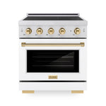 ZLINE Autograph Edition 30" 4.2 cu. ft. Paramount Induction Range with 4 Element Cooktop and Electric Convection Oven in Stainless Steel with White Matte Door and Polished Gold Accents, SINRZ-WM-30-G