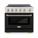 ZLINE Autograph Edition 36" 5.2 cu. ft. Paramount Induction Range with 5 Element Cooktop and Electric Convection Oven in Stainless Steel with Black Matte Door and Champagne Bronze Accents, SINRZ-BLM-36-CB