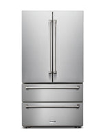 Thor Kitchen's 36 Inch Professional French Door Refrigerator with two separate Freezer Drawers provides ample storage and keeps everything as cool, crisp, cold and/or frozen as the recipe calls for. Moisture, odor transfer and freezer burn? Gone. Compliments on meals? Way, way up.
