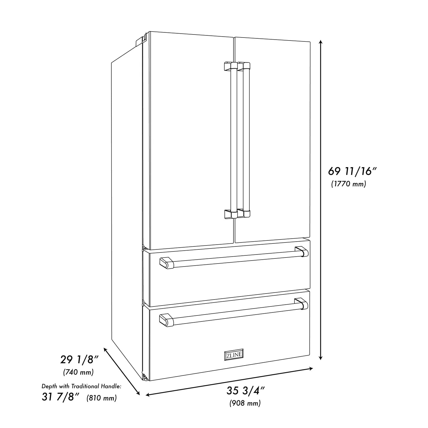 This ZLINE Autograph 36" 22.5 cu. ft Freestanding French Door Refrigerator, crafted in Lake Tahoe, USA, combines top-tier performance with classic design. This refrigerator is packed with innovative features to enhance your kitchen experience, making it the perfect blend of style and functionality.