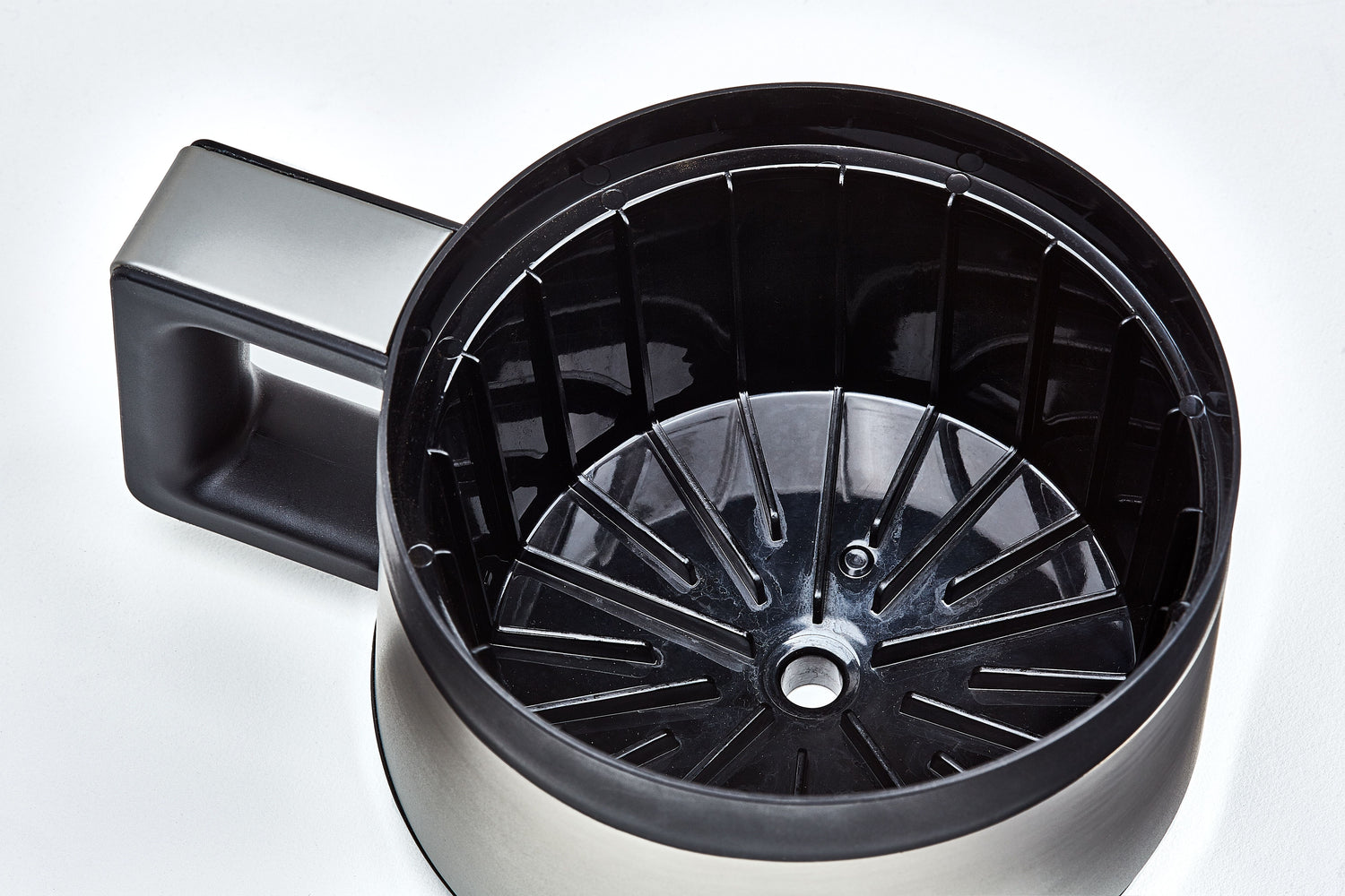 • Material: - Thick, precision stamped stainless steel // - BPA-free copolymer water tank with water markings from 2 to 8 cups, with accuracy to within 1 ounce.