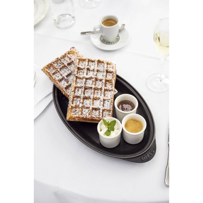 Bring fresh, flavorful fish straight from the oven to the table with this elegant cast-iron serving dish from STAUB. Designed in a sleek, oval silhouette with a striking brass knob, it showcases your dishes beautifully while delivering exceptional cooking performance. The lid’s self-basting nubs continually redistribute moisture to keep fish tender, juicy, and full of flavor. With a 0.7-liter capacity and robust craftsmanship, this piece blends modern French design with timeless durability—making it perfect for cooking and presenting seafood with effortless style for friends and family.