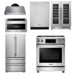THOR Kitchen Package - 30" Gas Range, Range Hood, Microwave, Refrigerator, Dishwasher, Wine Cooler, AP-TRG3001-C-6