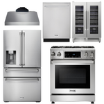THOR Kitchen Package - 30" Gas Range, Range Hood, Refrigerator with Water and Ice Dispenser, Dishwasher, Wine Cooler, AP-TRG3001-C-8