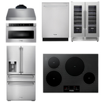 THOR Kitchen Package - 30" Induction Cooktop, Range Hood, Microwave, Refrigerator with Water and Ice Dispenser, Dishwasher, Wine Cooler, AP-TIH30-C-10