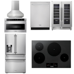 THOR Kitchen Package - 30" Induction Cooktop, Range Hood, Microwave, Refrigerator with Water and Ice Dispenser, Dishwasher, Wine Cooler