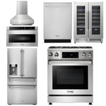 THOR Kitchen Package - 30" Gas Range, Hood, Microwave, Refrigerator with Water and Ice Dispenser, Dishwasher, Wine Cooler