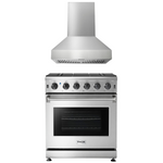 THOR Kitchen Package - 30" Gas Range, Range Hood, AP-LRG3001U-W