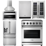 THOR Kitchen Package - 30" Propane Gas Range, Range Hood, Microwave, Refrigerator with Water and Ice Dispenser, Dishwasher, Wine Cooler