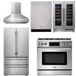 THOR Kitchen Package - 36" Gas Range, Range Hood, Refrigerator, Dishwasher, Wine Cooler, AP-TRG3601LP-W-3