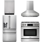 THOR Kitchen Package - 36" Gas Range, Range Hood, Refrigerator with Water and Ice Dispenser, Dishwasher, AP-TRG3601-W-7
