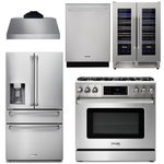THOR Kitchen Package - 36" Gas Range, Range Hood, Refrigerator with Water and Ice Dispenser, Dishwasher, Wine Cooler, AP-TRG3601LP-C-8